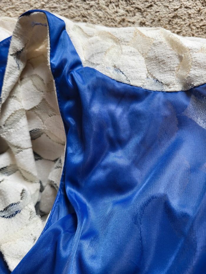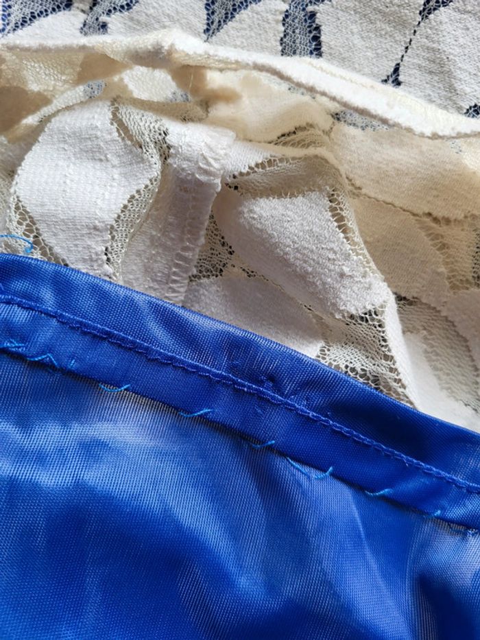 La doublure a été cousue dans le bas pour la raccourcir. Elle peut être décousue et enlever si vous souhaitez une belle robe de plage transparente