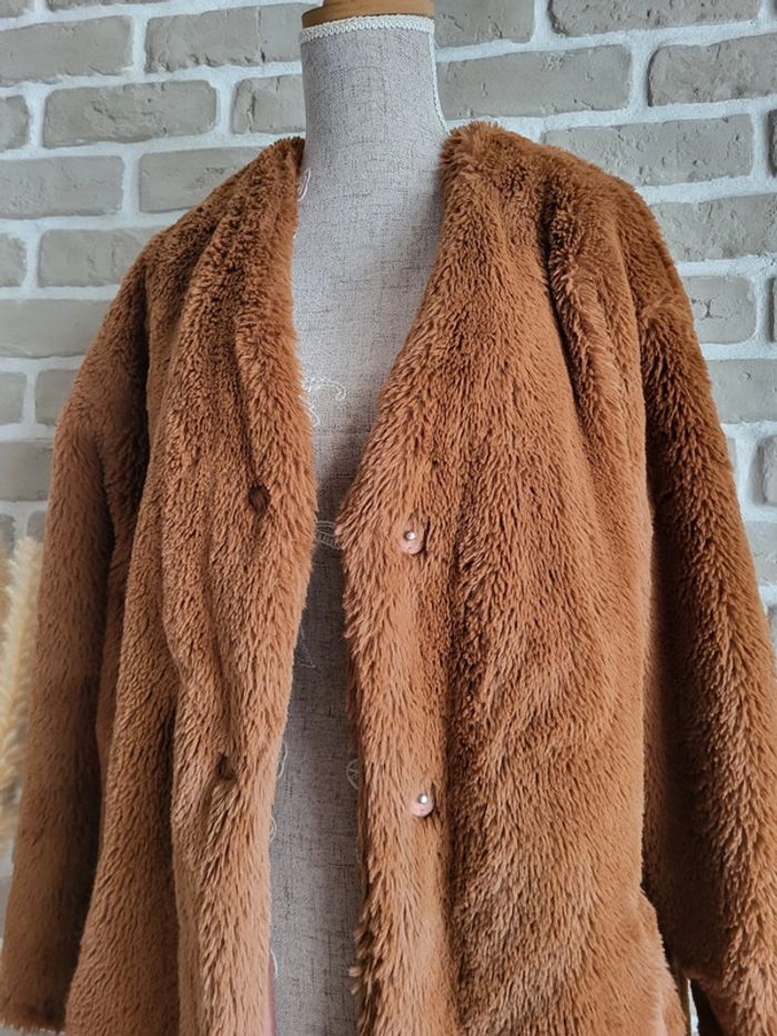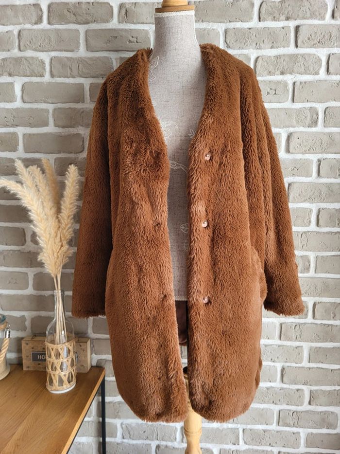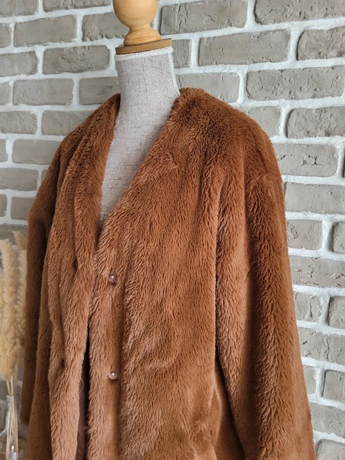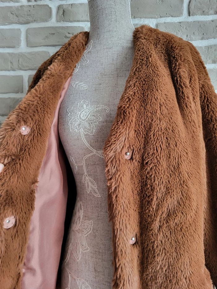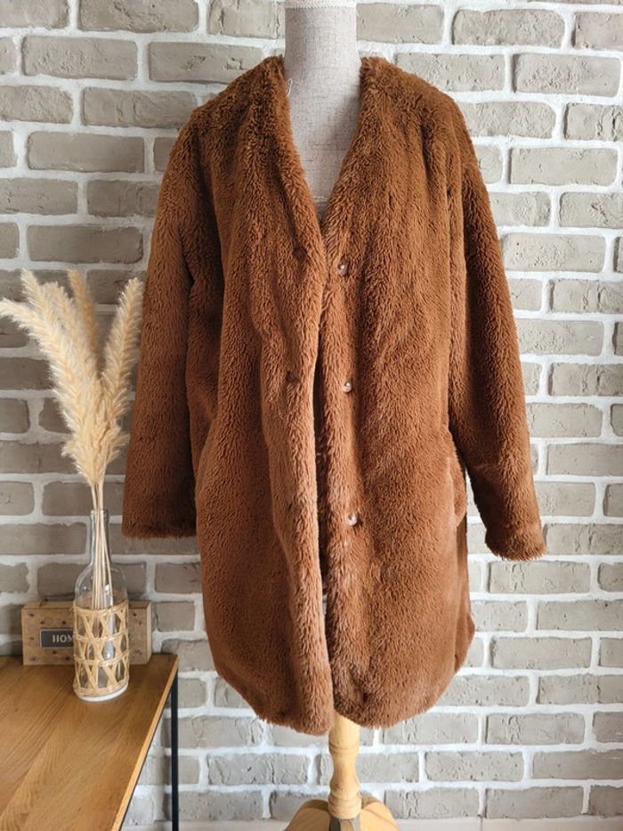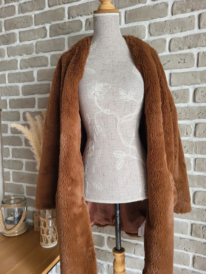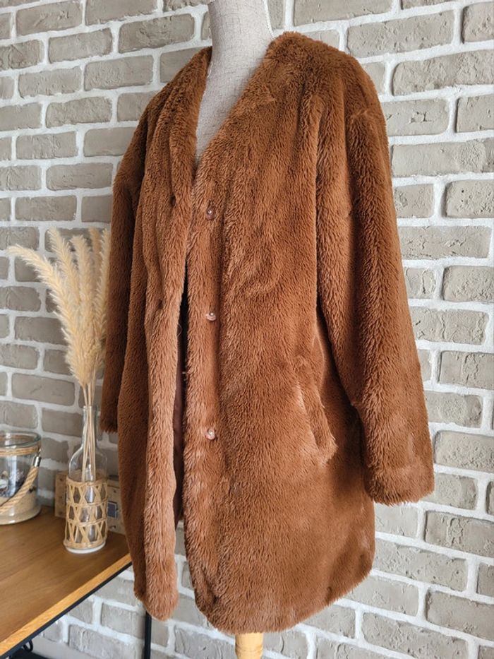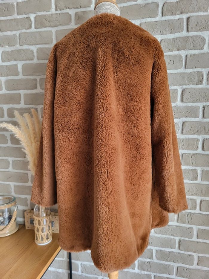 💝 Bénéficiez d'une réduction en créant lot dans mon dressing 🛍️ 🌸 Veste / manteau en fausse fourrure Pull & Bear en parfait état 🎀 Fausse fourrure très douce de couleur marron entièrement doublée 🪷 Coupe droite oversize Fermeture par boutons pressions dissimulés 2 poches latérales 🍥 Taille S 36 🩷 À porter avec un jean mom et des baskets pour un look urbain, avec une robe et des bottes pour une silhouette élégante ou avec un col roulé beige et un pantalon tailleur pour une tenue de bureau stylé