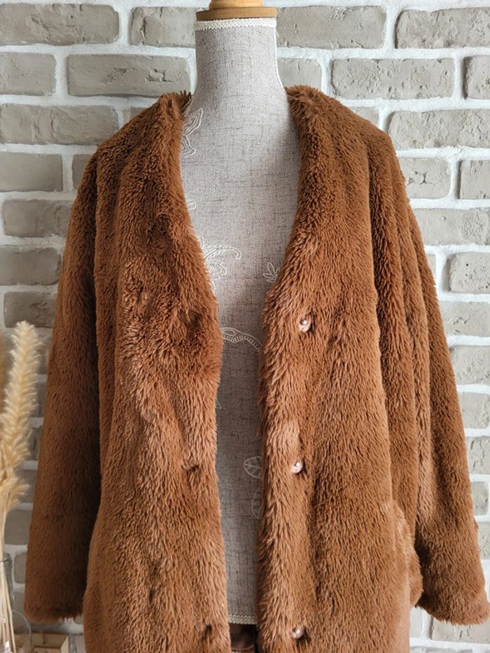 Manteau fausse fourrure marron - Pull & Bear - photo numéro 1