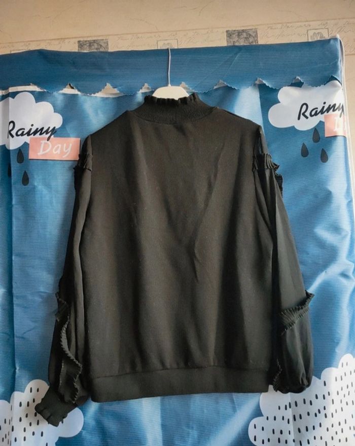 Pull noir Col roulé avec manches transparentes - photo numéro 2