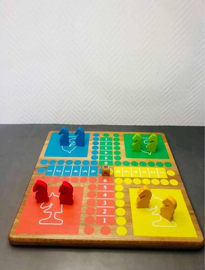 Plateau en bois recto verso jeu des petits chevaux et jeu de dames - photo numéro 1