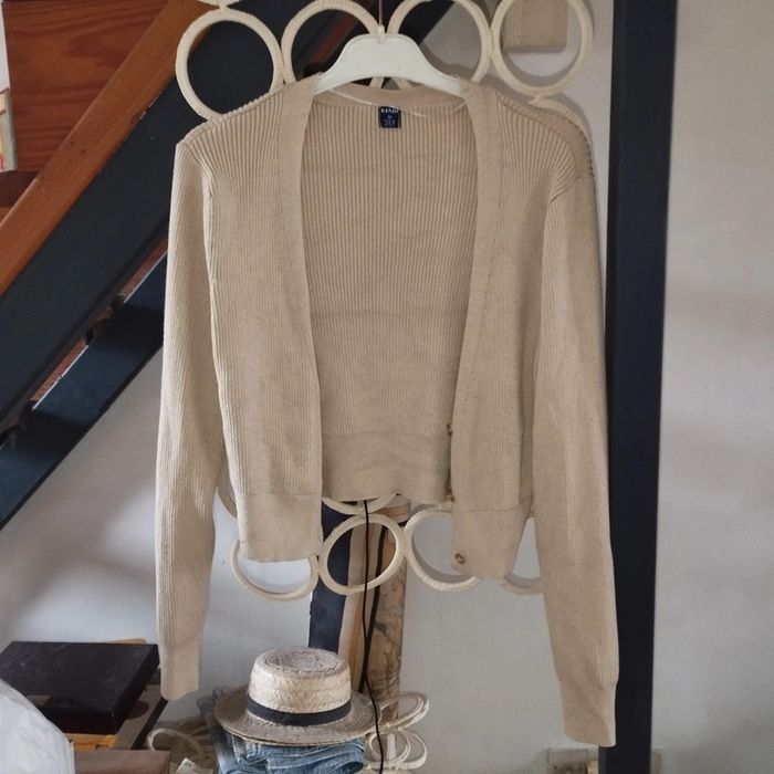 Gilet femme beige en maille fine marque Kiabi taille 38/40 coton acrylique laine très bon état porté normalement (visiter mon site les prix sont abordables et négociable)