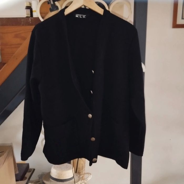 Gilet femme noire marque M.L.C collection taille M agrylique laine maille fine avec poches toute saison très bon état porté normalement (visiter mon site les prix sont abordables et négociable)