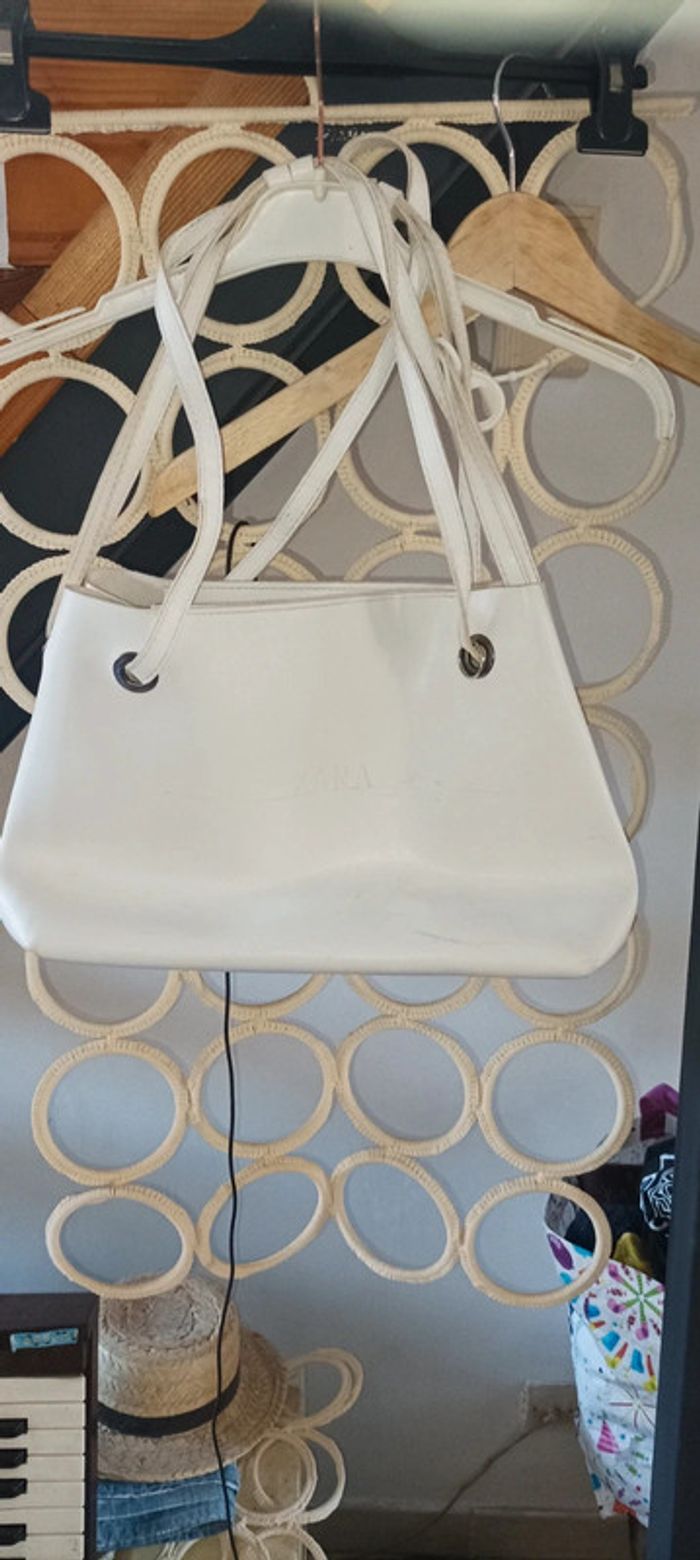 Sac Zara femme bandoulière ou main blanc une poche intérieure fourre tout Bon état polyuréthane simili cuir bon état porté normalement (visiter mon site les prix sont abordables et négociable)