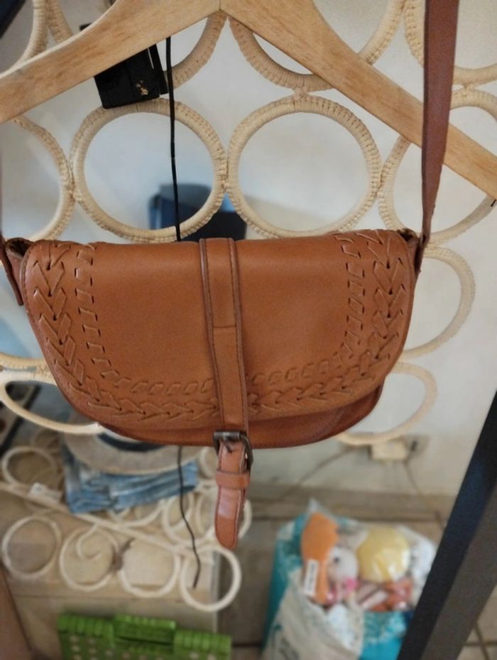 Sac bandoulière bohémienne en cuir marron de marque MIM très bon état porté normalement taille 22 CM de longueur et 17 cm de hauteur (visiter mon site les prix sont abordables et négociable)