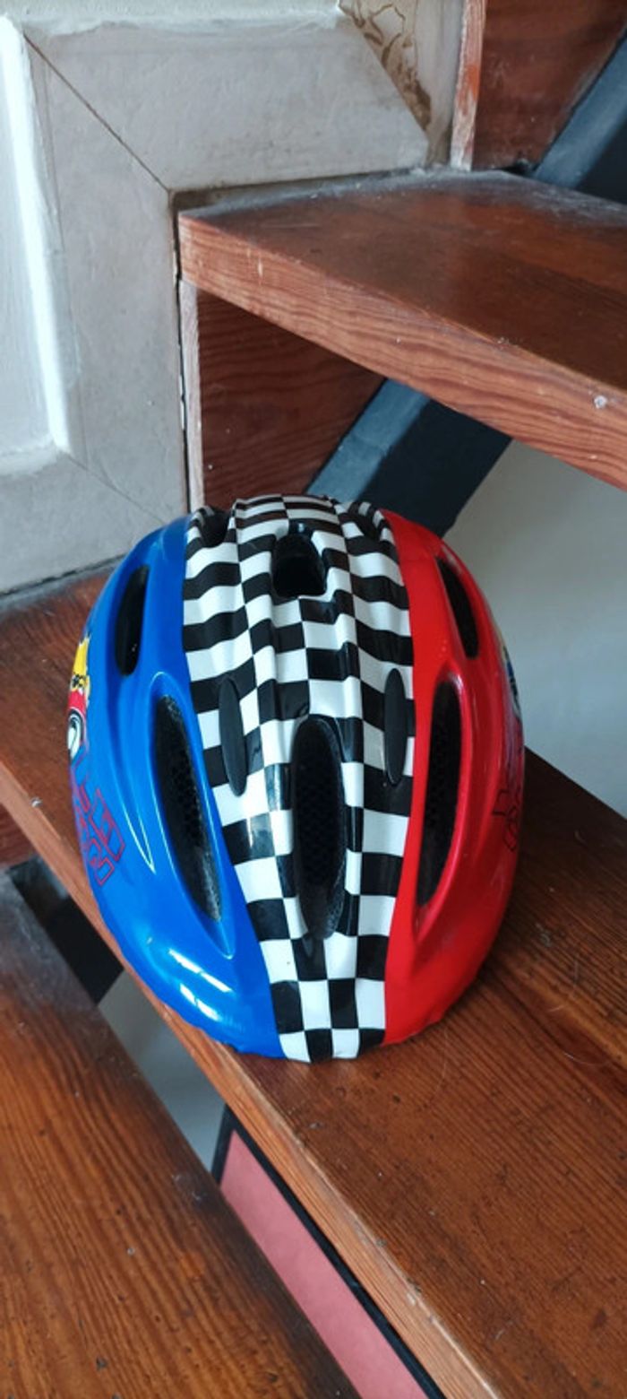 Casque enfant vélo trottinette pour enfants de 3/5 (46/51) réglage avec les sangle très bon état rouge et bleu plastique et mousse (visiter mon site les prix sont abordables et négociable)