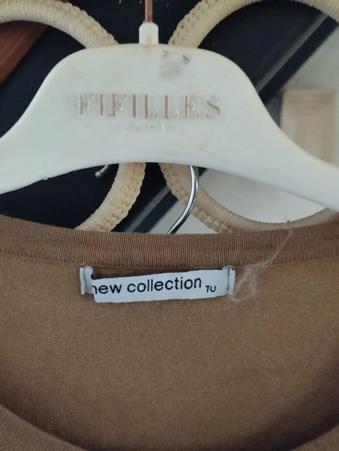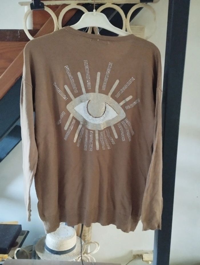Pull femme marque New collection polyamide viscose manches longues imprimé beige marron taille 38 très bon état porté normalement (visiter mon site les prix sont abordables et négociable)
