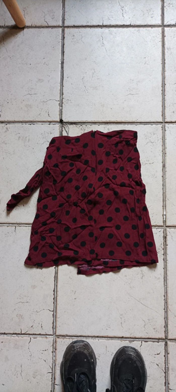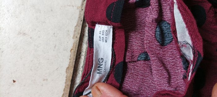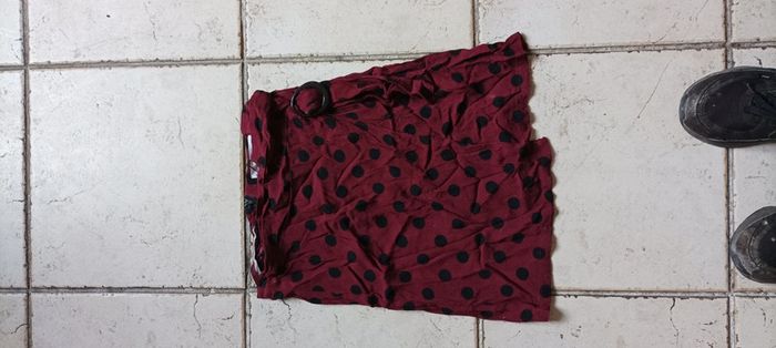 Mini jupe femme à pois taille XS marque MNG rouge à pois noir polyester viscose très bon état porté normalement (visiter mon site les prix sont abordables et négociable)