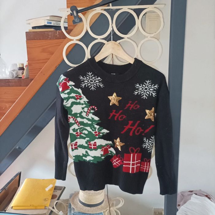 Pull mixte taille XS noir à motifs laine marque Kiabi très bon état porté normalement (visiter mon site les prix sont abordables et négociable)