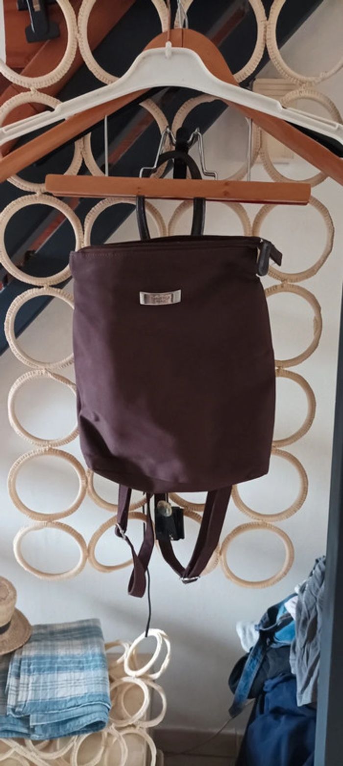 Sac à dos femme marque paquetage Paris marron taille 23 cm de large et 29 de haut poches intérieures accompagnée d'un portefeuille intérieur avec petite poche aussi vu sur photos très bon état porté normalement utilisé 1 fois ( visiter mon site les prix sont abordables et négociable)