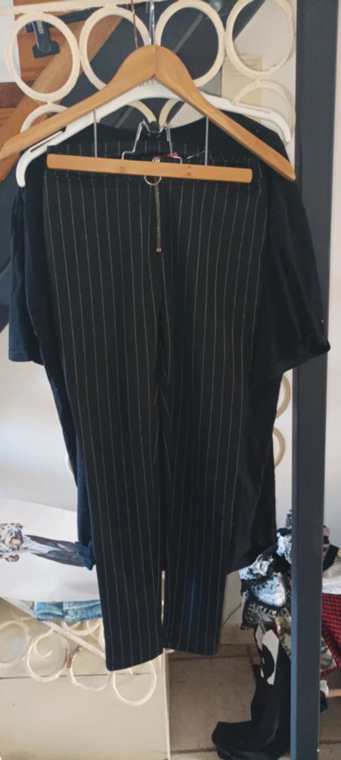 Pantalon classique femme noire à rayures fine taille XXS très bon état porté normalement marque Tissaia acrylique elasthanne polyester (visiter mon site les prix sont abordables et négociable)