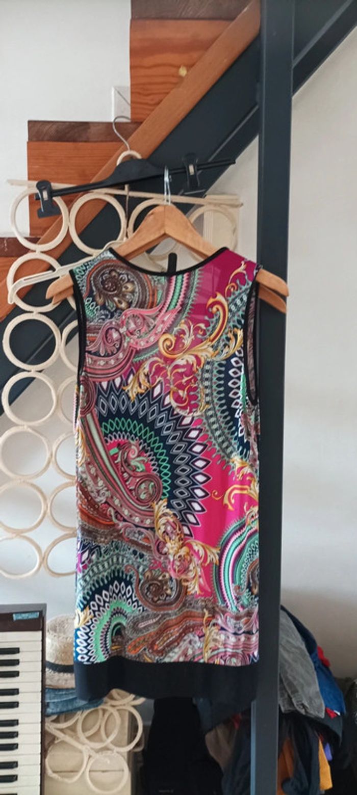 Robe fluide femme imprimé polyester élastanne taille M marque autres ton très bon état porté normalement (visiter mon site les prix sont abordables et négociable)