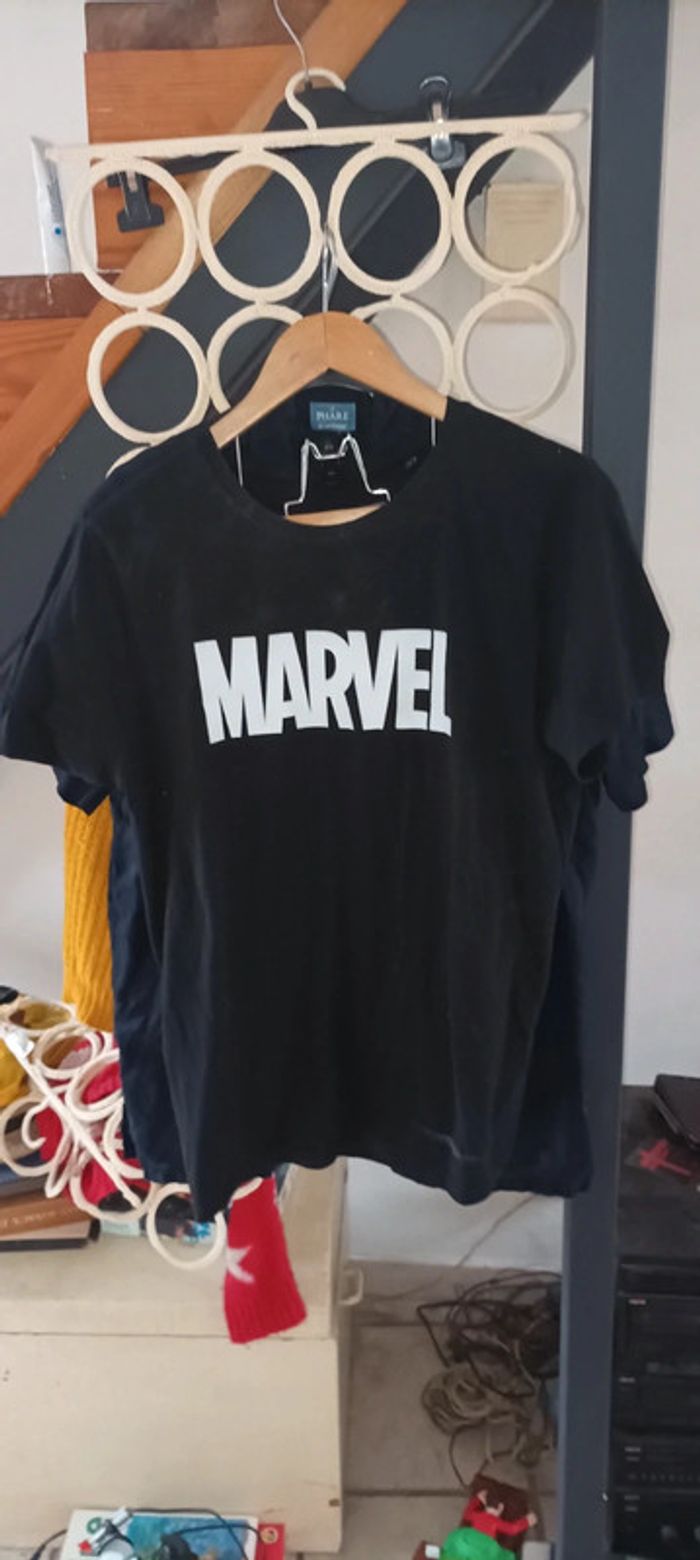 Tee-shirt femme homme logo Marvel par Marvel 90%coton 10%polyester taille L noire très bon état porté normalement (visiter mon site les prix sont abordables et négociable)