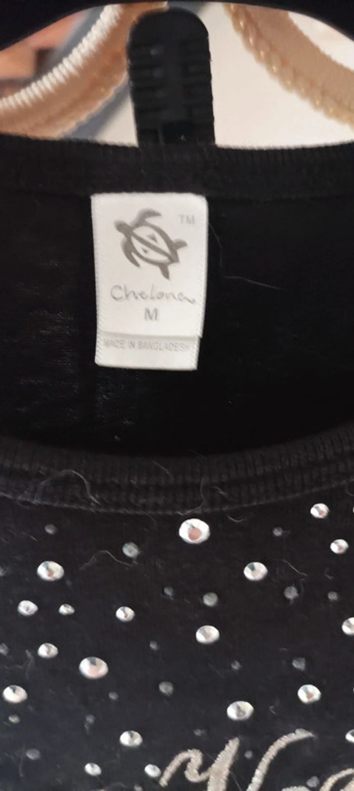 Haut tee-shirt femme noire marque chelona manches courtes coton taille M porté normalement très bon état (visiter mon site les prix sont abordables et négociable)
