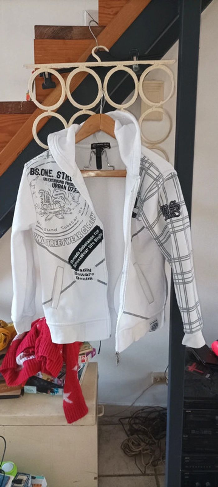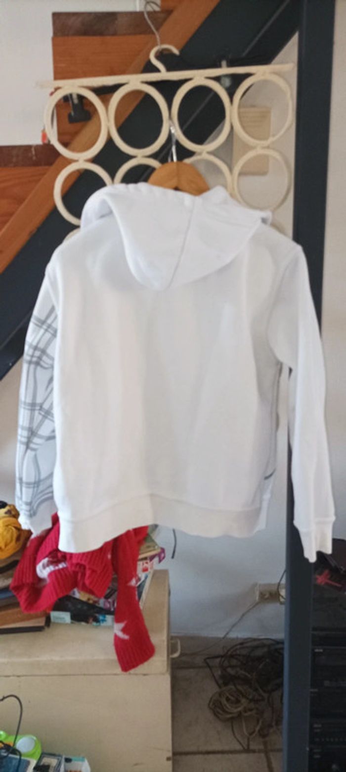 Sweat a capuche mixte très bon état taille normale 38 avec plusieurs motifs blancs marques urbain sbunlance porté normalement (visiter mon site les prix sont abordables et négociable)