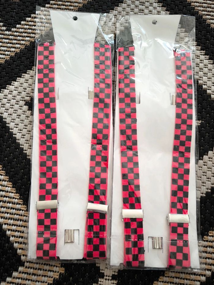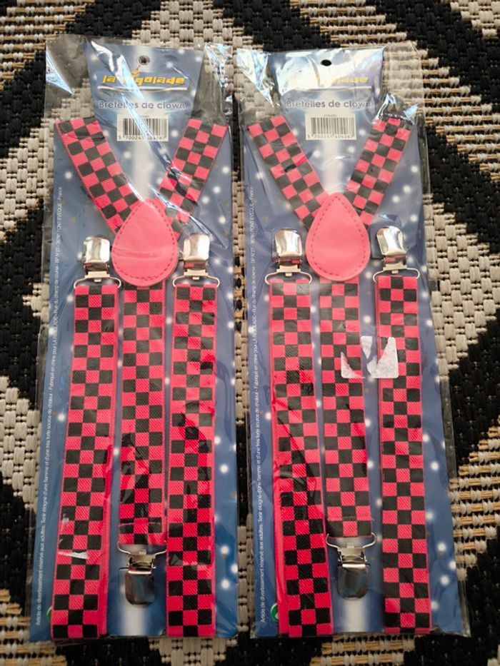 Lot de 2 bretelles clown a carreaux noir et rose neuve