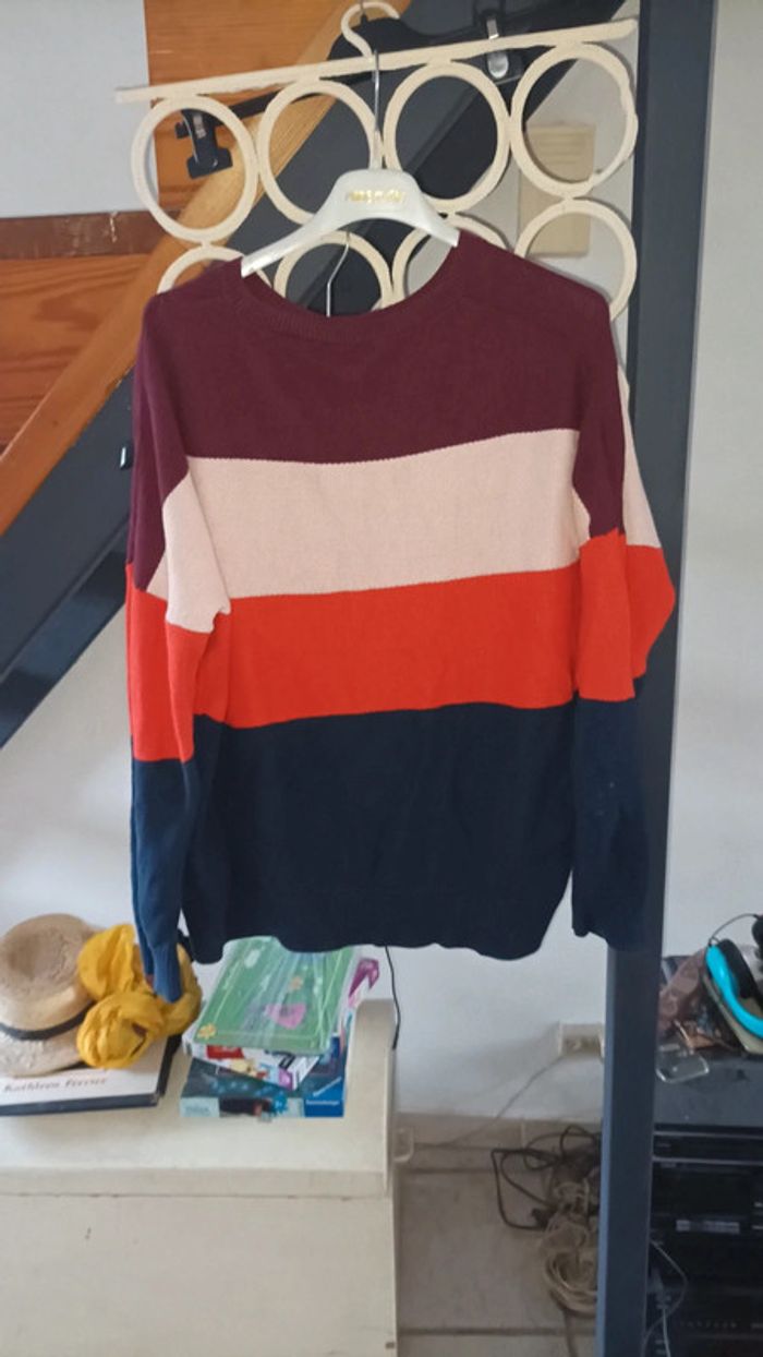 Pull femme Col rond multicolore à rayures horizontales de taille grande XL de marque ESMARA laine porté normalement très bon état (visiter mon site les prix sont abordables et négociable)