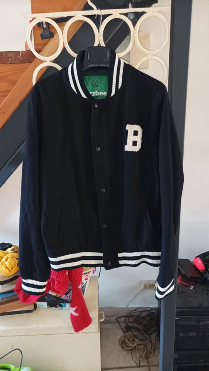 Blouson homme noir laine acrylique polyester taille grande L porté normalement très bon état marque Bizzbee (visiter mon site les prix sont abordables et négociable)