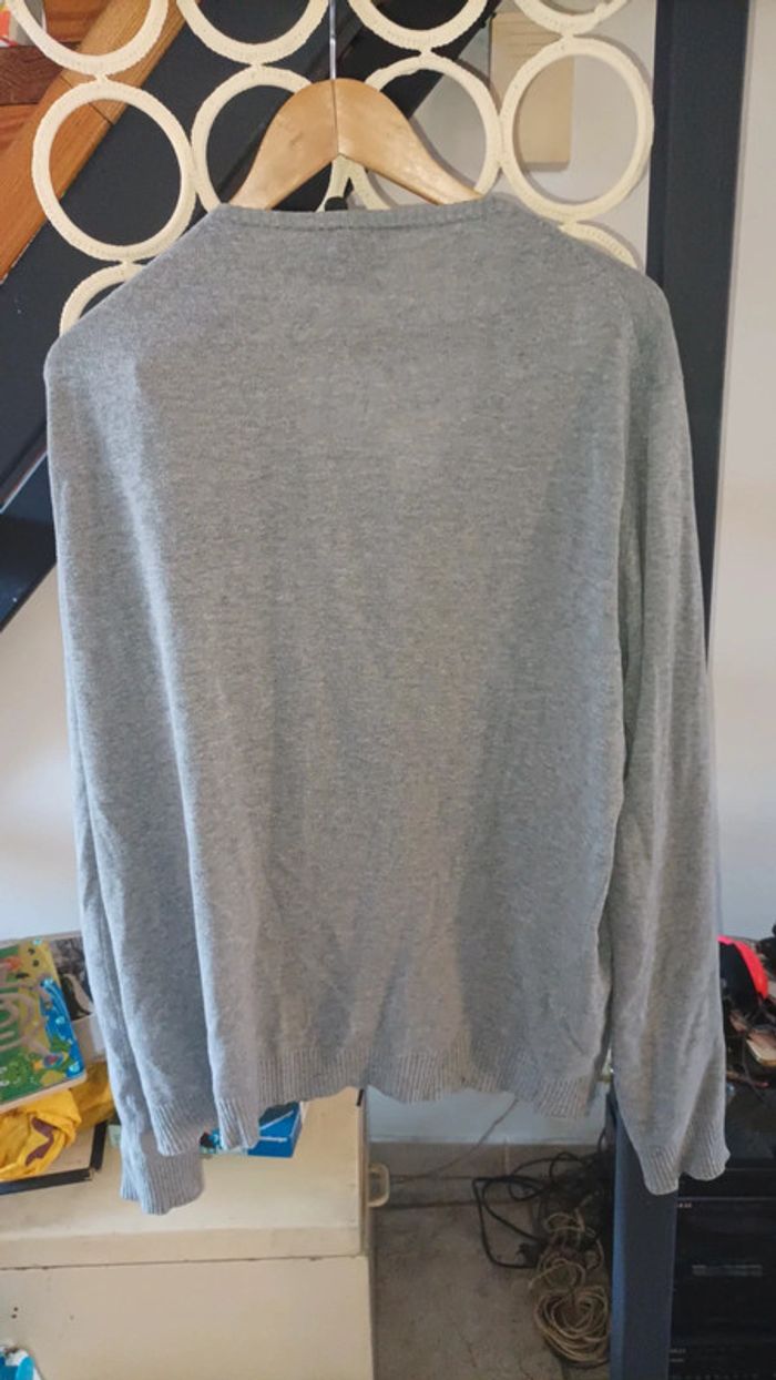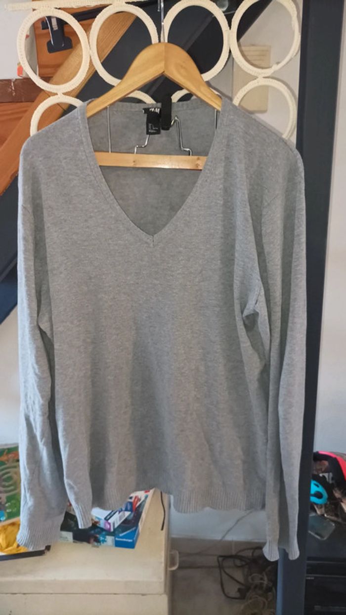Pull homme col V maille fine très bien pour printemps et l'été gris marque HM taille normale L porté normalement très bon état (visiter mon site les prix sont abordables et négociable)