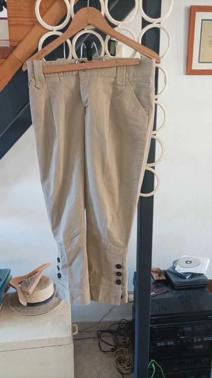 Pantalon fille femme de taille normale 38 arrive au niveau des chevilles avec des boutons de côté et poches arrières de couleur beige de marque ZARA WOMAN(visiter mon site les prix sont abordables et négociable)