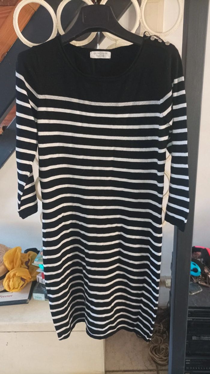Robe pull femme longues à rayures marinière de marque cache cache de taille normale M porté normalement très bon état 50% acrylique et 50%laine(visiter mon site les prix sont abordables et négociable)