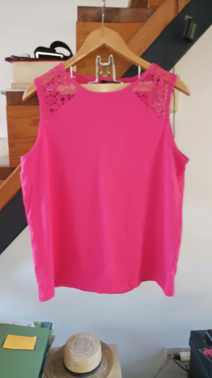 Débardeur femme rose porté normalement, de taille grande 40/42 de marque esmara