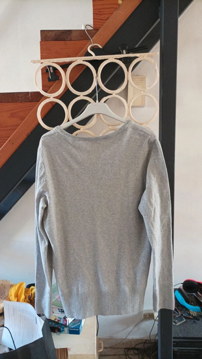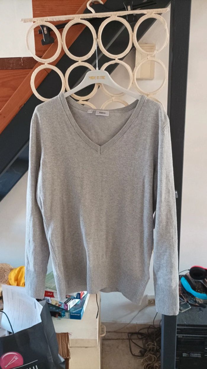 Pull femme Col ouvert V porté normalement de taille normale 40/42 gris marque BPC très bon état très bien pour la saison (visiter mon site les prix sont abordables et négociable)
