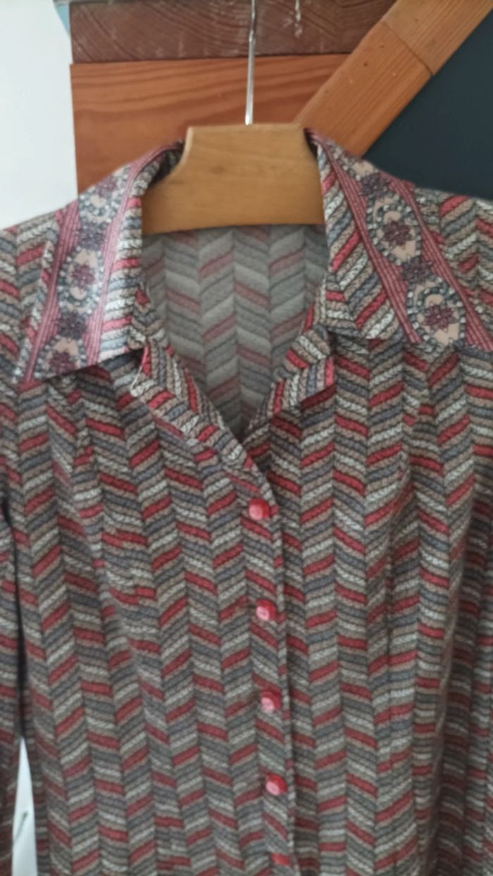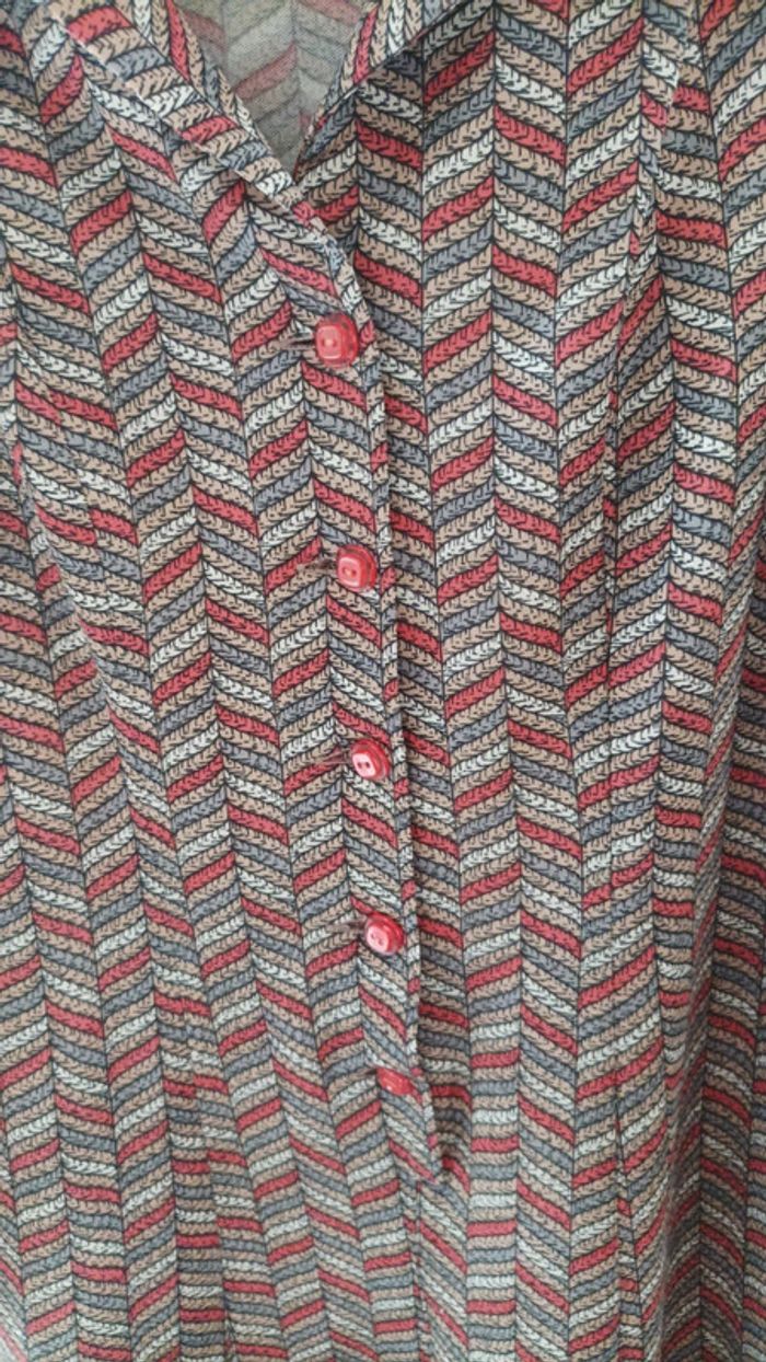 Robe chemise femme , peu porté, multicolores qui vire sur le rouge longue, double boutonnage sympas
