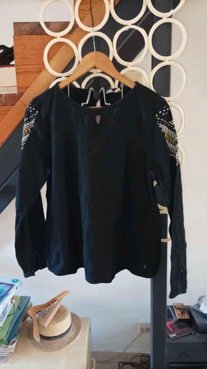 Chemisier (tee shirt, manches longues)femme bleue marine de taille normale M de marque Roxy porté normalement très bon état général (visiter mon site les prix sont abordables et négociable)