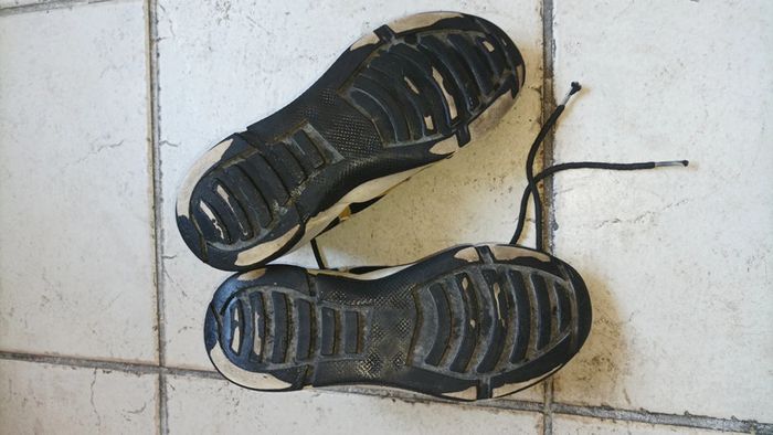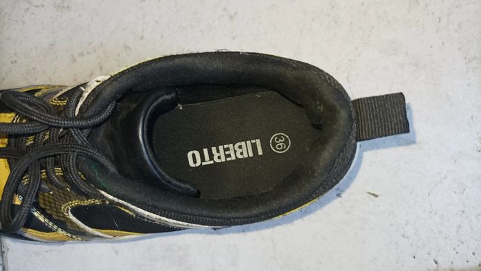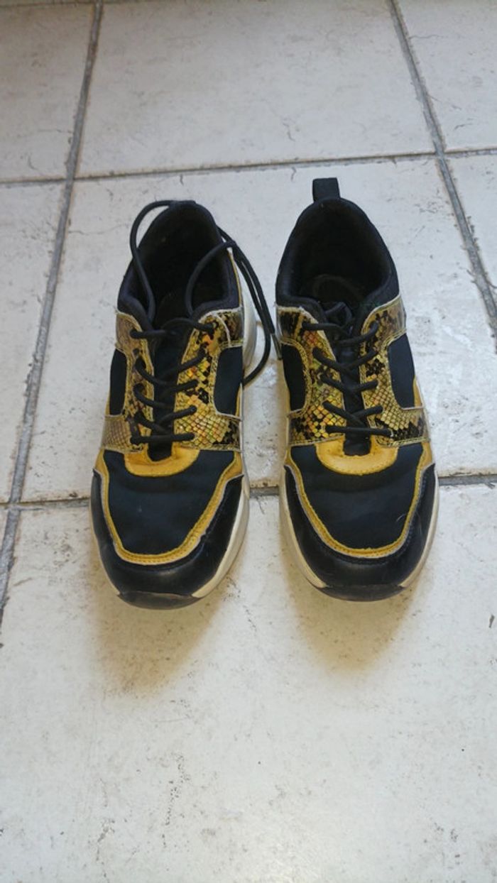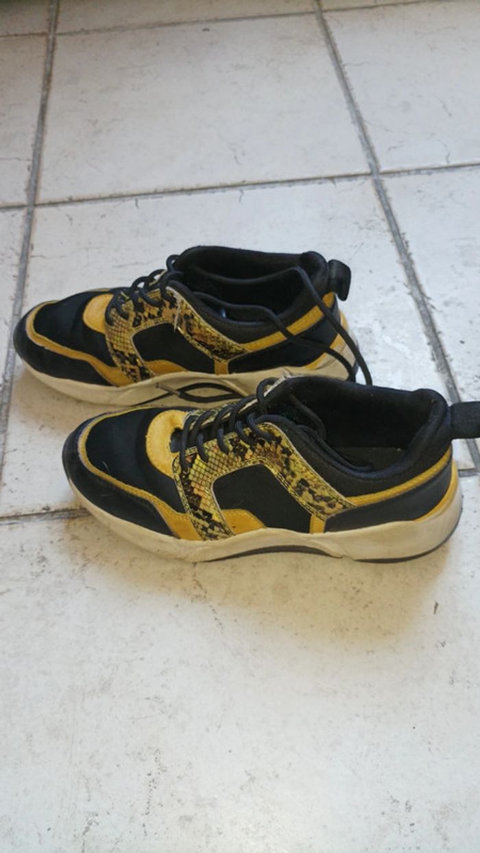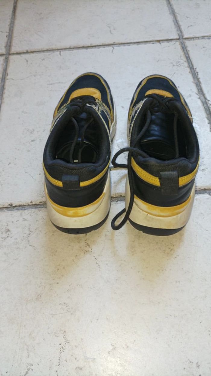 Baskets liberto homme ou femme, de taille normale 38 couleur noire et jaune, porté normalement bonne état, avec petit usure légère