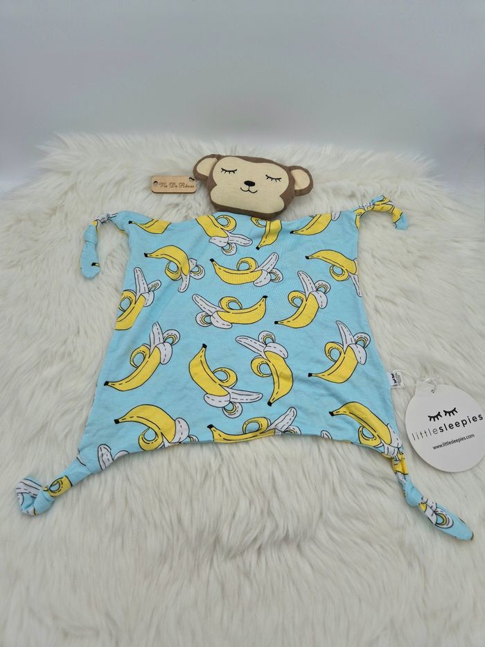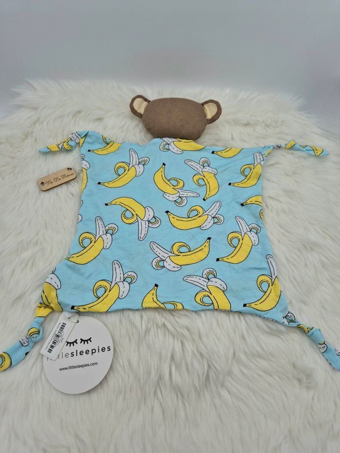 Doudou plat Singe Bananes Bleu Jaune Little Sleepies Bananas Sleepyhead Monkey Lovey - photo numéro 1