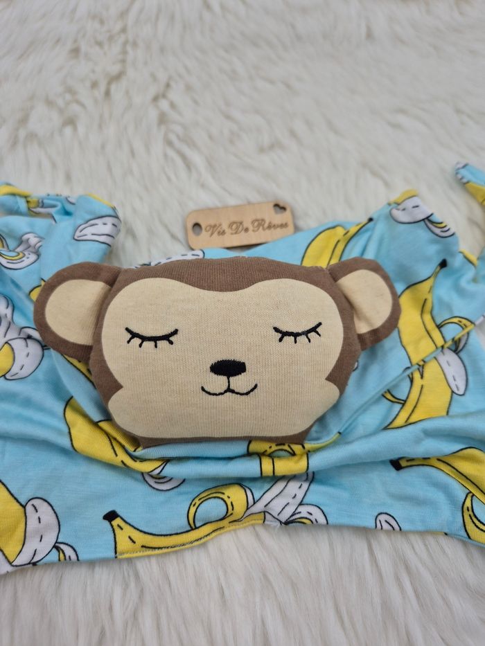 Doudou plat Singe Bananes Bleu Jaune Little Sleepies Bananas Sleepyhead Monkey Lovey