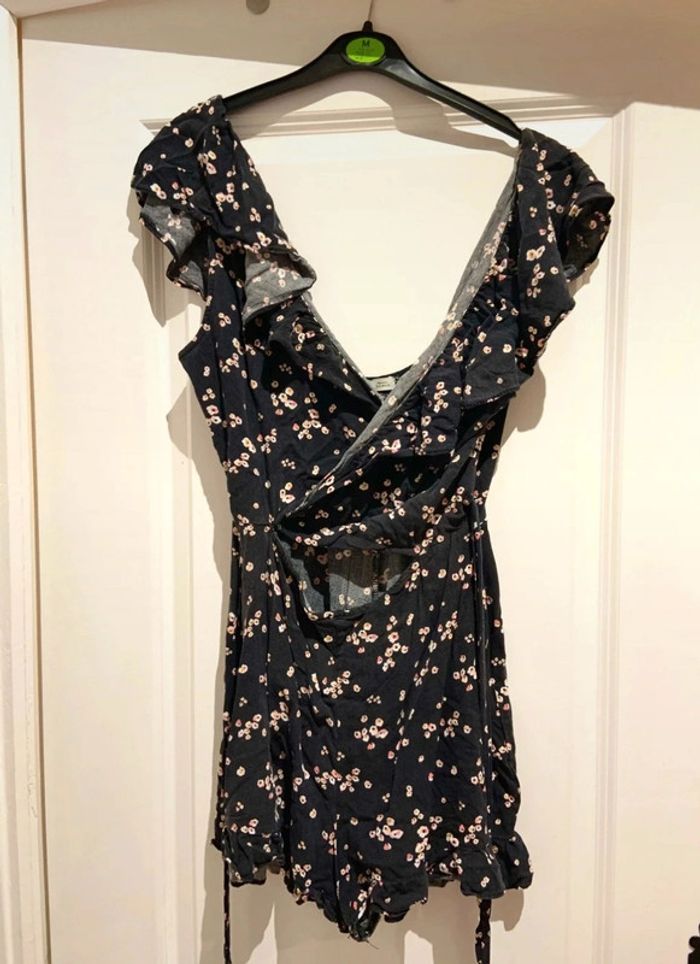 🌸 Combishort manches courtes Pull & Bear noire imprimé fleuri multicolore taille M 38 en viscose - photo numéro 1
