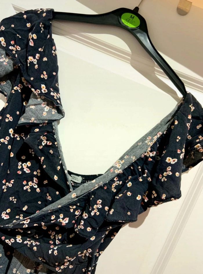 🌸 Combishort manches courtes Pull & Bear noire imprimé fleuri multicolore taille M 38 en viscose - photo numéro 5