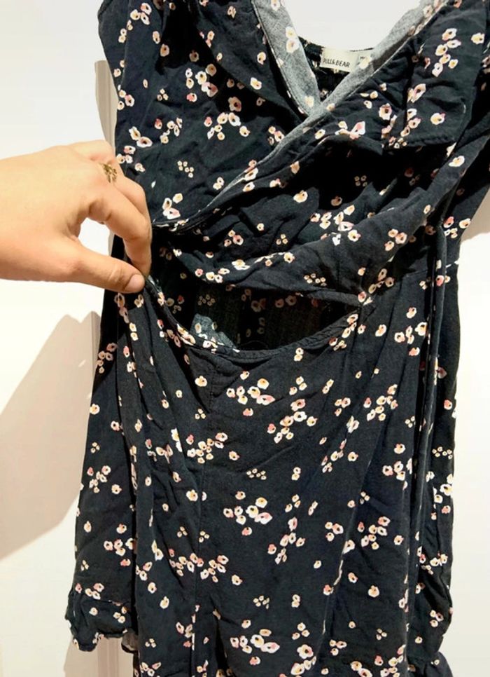 🌸 Combishort manches courtes Pull & Bear noire imprimé fleuri multicolore taille M 38 en viscose - photo numéro 4