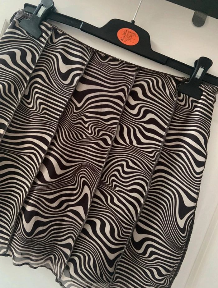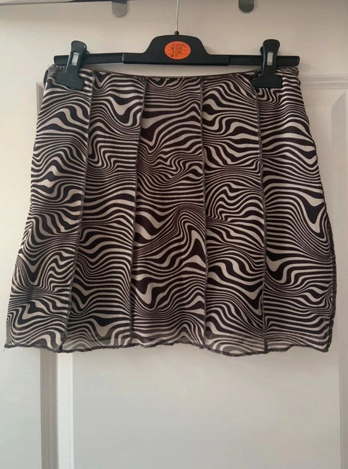 🌸 Jupe marron foncé et blanc H&M imprimé psychédélique taille S 36 en polyester et elasthane - photo numéro 2