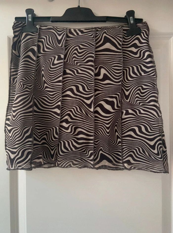 🌸 Jupe marron foncé et blanc H&M imprimé psychédélique taille S 36 en polyester et elasthane - photo numéro 1