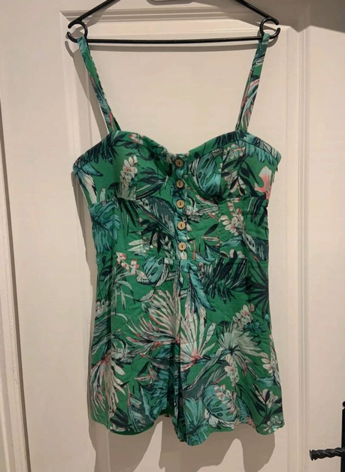 🔝 Combishort a bretelles verte Pull & Bear imprimé tropical taille XL 42 polyester viscose - photo numéro 1