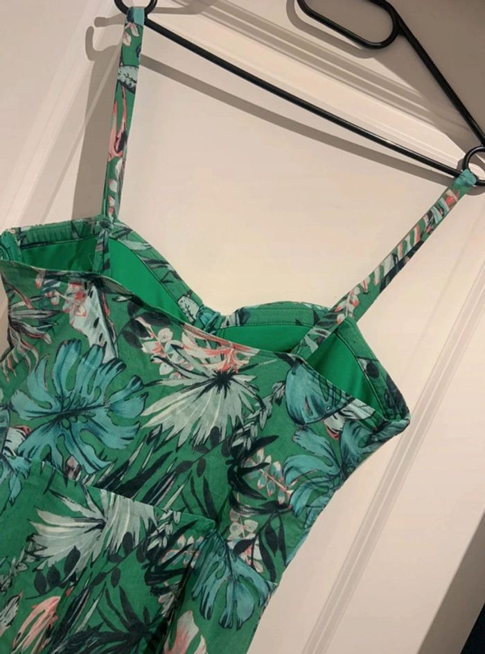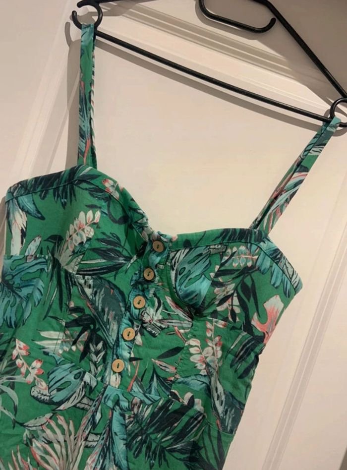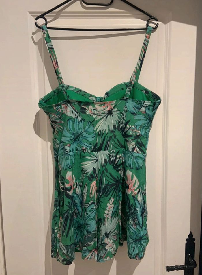 🔝 Combishort a bretelles verte Pull & Bear imprimé tropical taille XL 42 polyester viscose - photo numéro 2