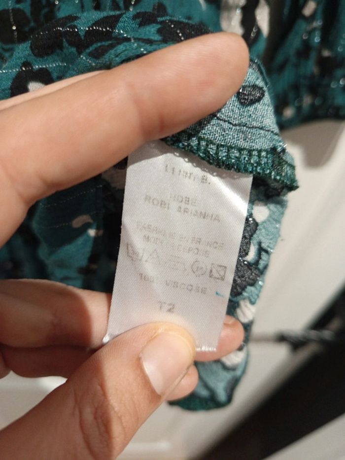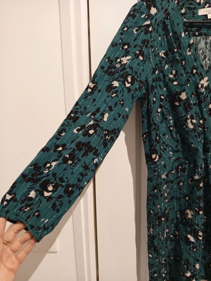 🔝 Robe courte manches longues Lenny B. Paris bleu vert imprimé fleuri taille 2 100% viscose - photo numéro 8
