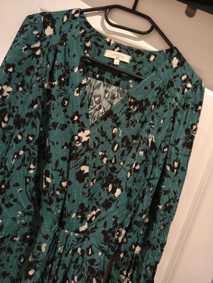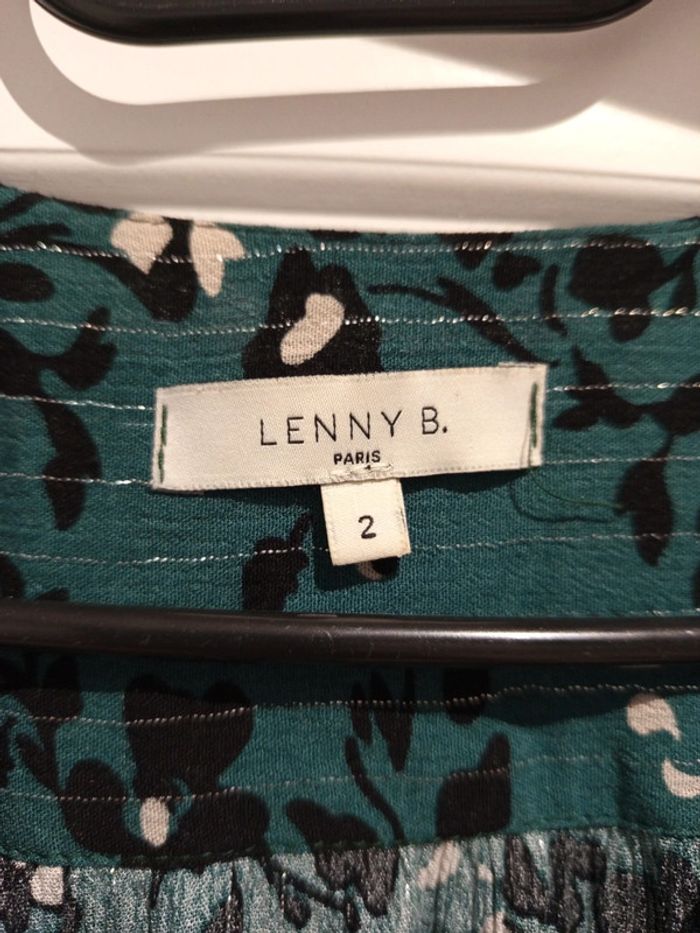 🔝 Robe courte manches longues Lenny B. Paris bleu vert imprimé fleuri taille 2 100% viscose - photo numéro 7