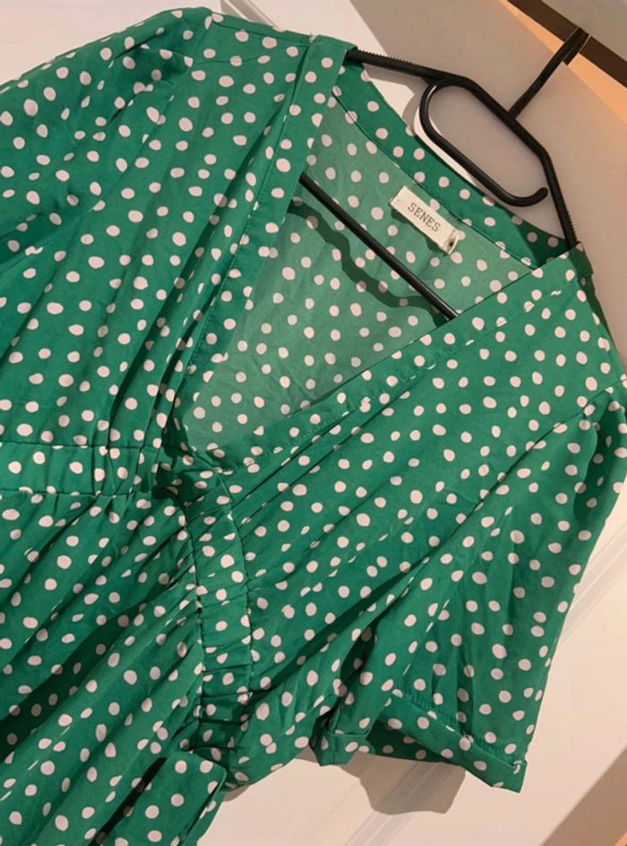 🔝 Robe courte manches courtes Senes verte a pois blancs décolleté en v en polyester et viscose - photo numéro 2