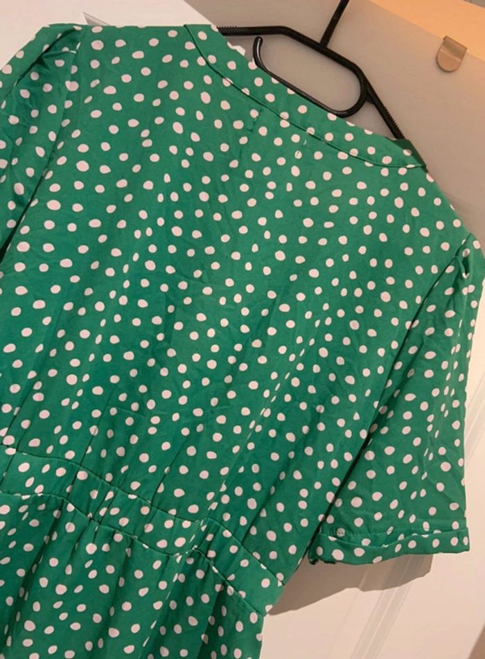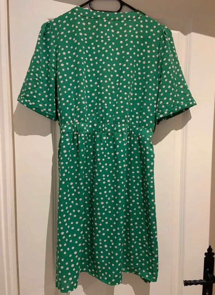 🔝 Robe courte manches courtes Senes verte a pois blancs décolleté en v en polyester et viscose - photo numéro 5