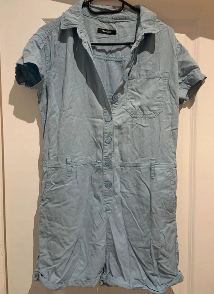 🔝 Combishort manches courtes Teddy Smith bleu clair jean taille S 36 en lin - photo numéro 1