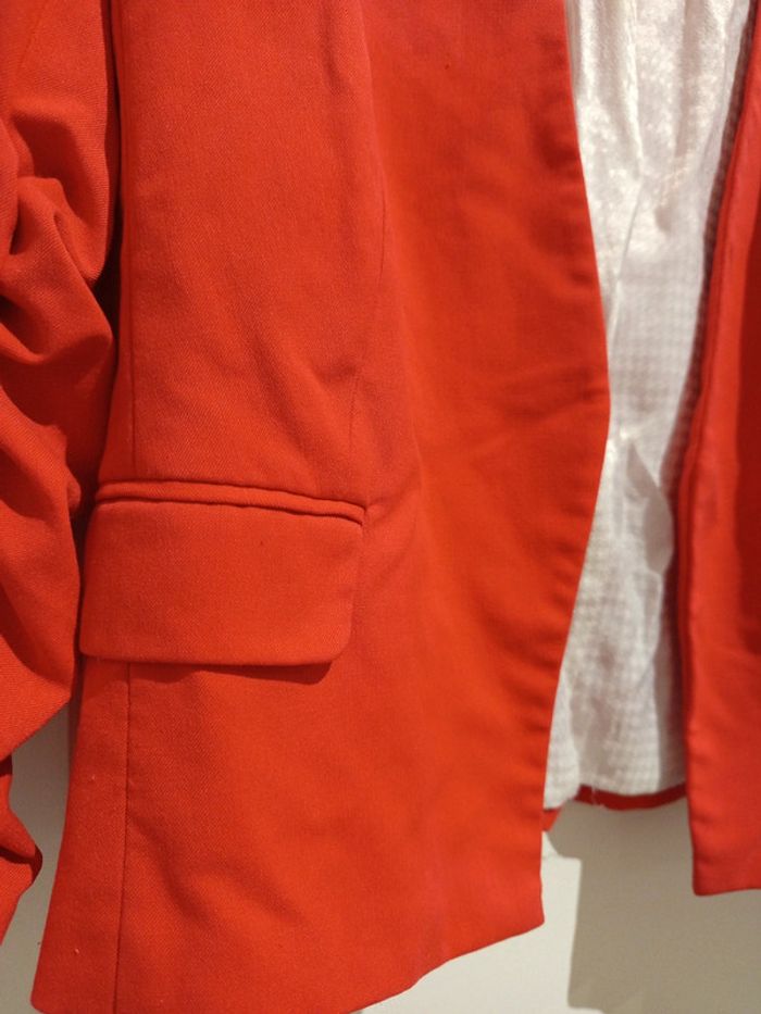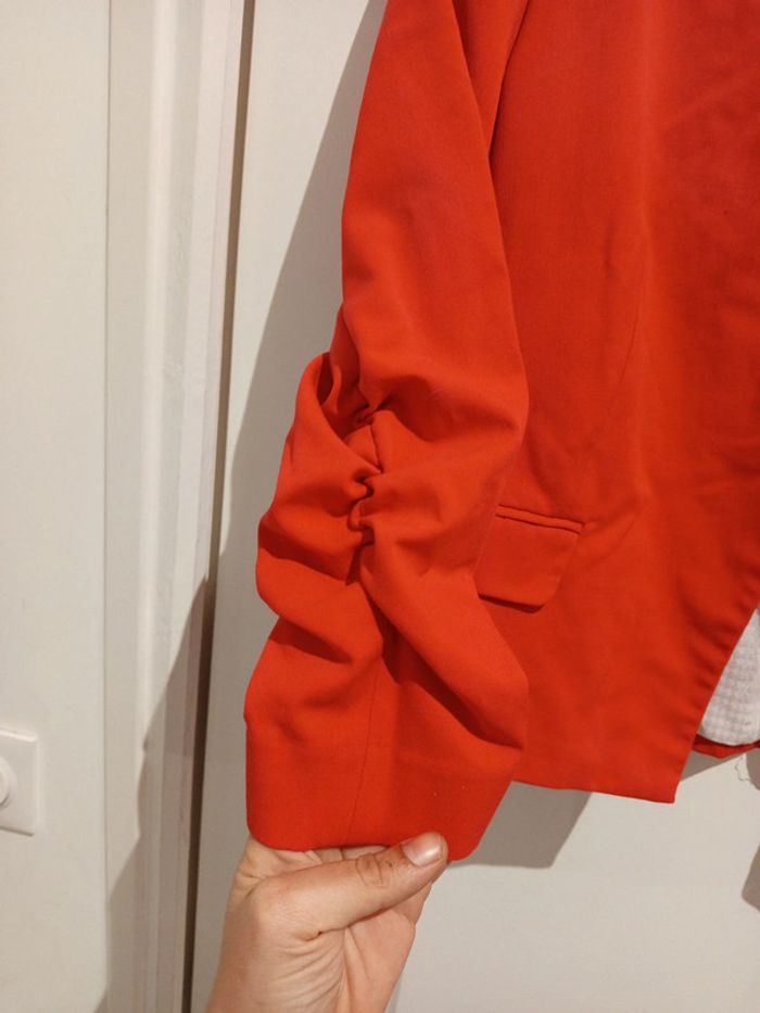 🔝 Veste blazer courte manches ¾ froncées H&M rouge taille EUR 42 en polyester viscose et elasthanne - photo numéro 7