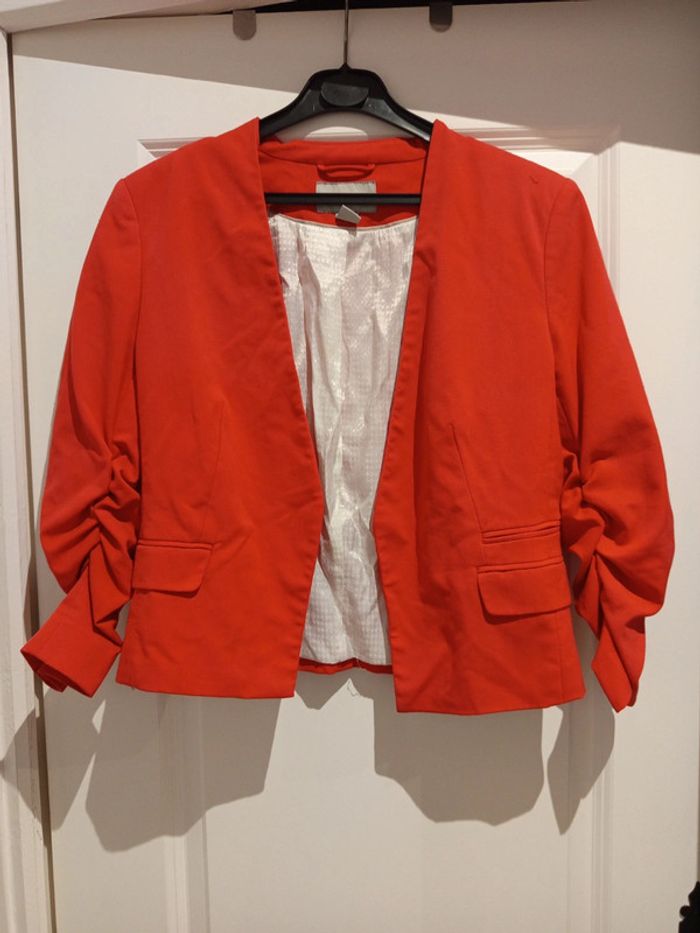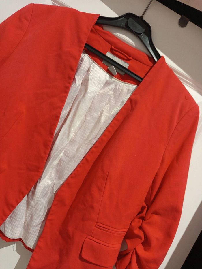 🔝 Veste blazer courte manches ¾ froncées H&M rouge taille EUR 42 en polyester viscose et elasthanne - photo numéro 1