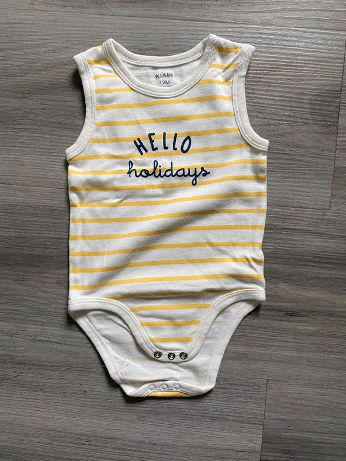 Lot 2 body taille 12 mois. 1 Kiabi et 1 orchestra. Il y a le nom de l’enfant écrit dans 1 body mais possibilité de camoufler avec une étiquette