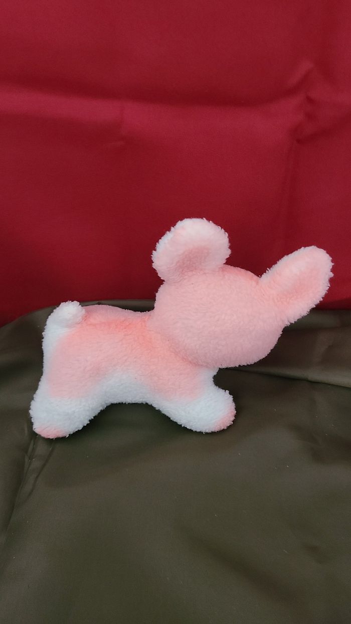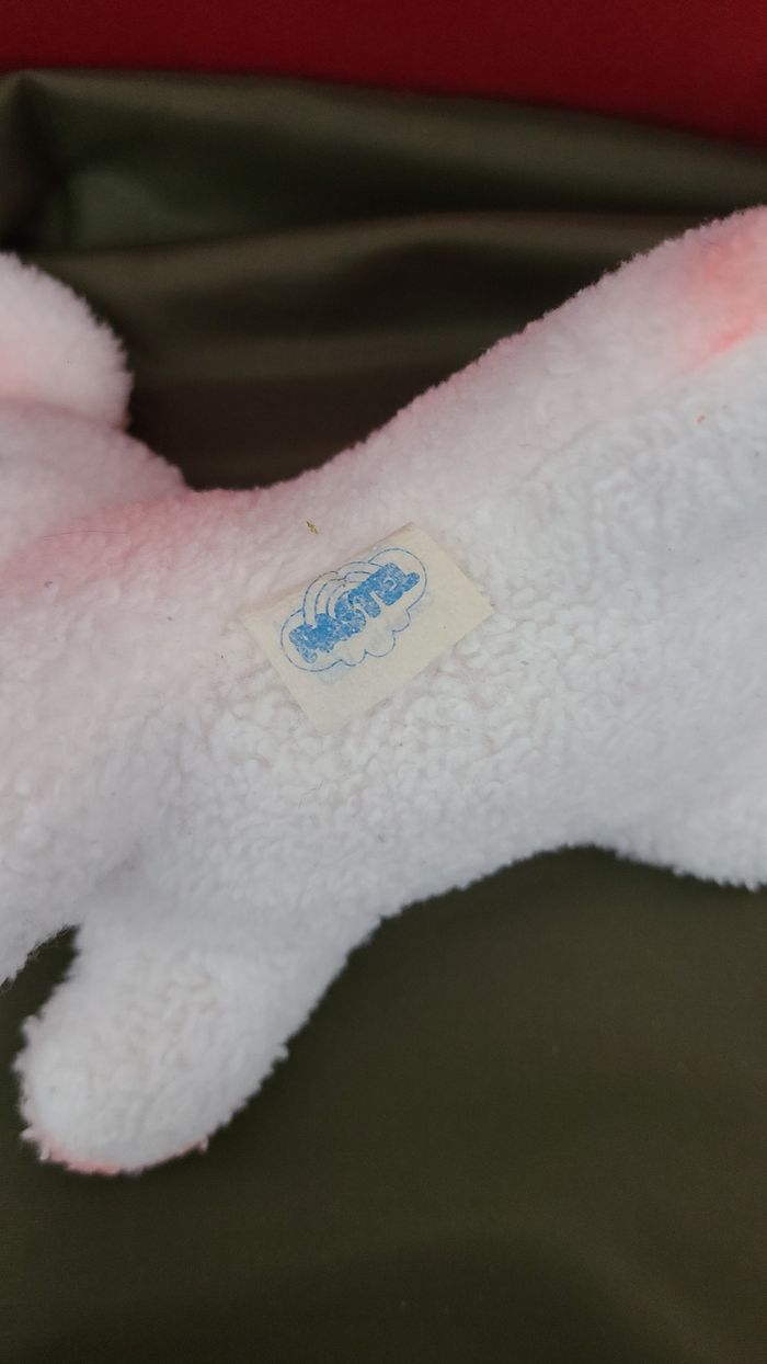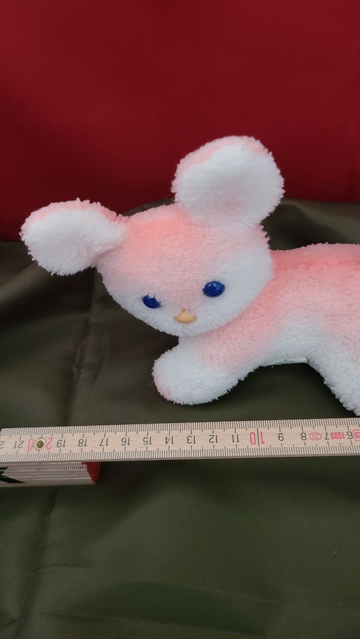 Peluche lapin PASTEL grelot couché Yeux bleus vintage rose et blanc 17 cm - photo numéro 6
