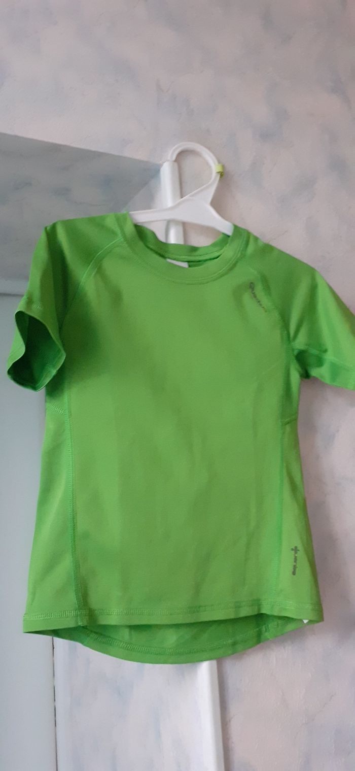 Vends un tee-shirt manches courtes en polyester vert fluo Quechua 5 ans