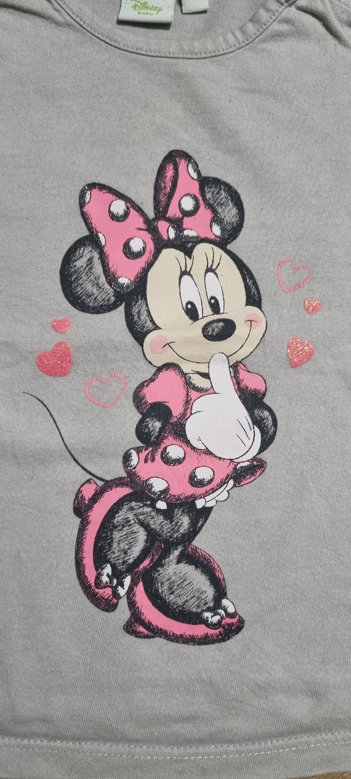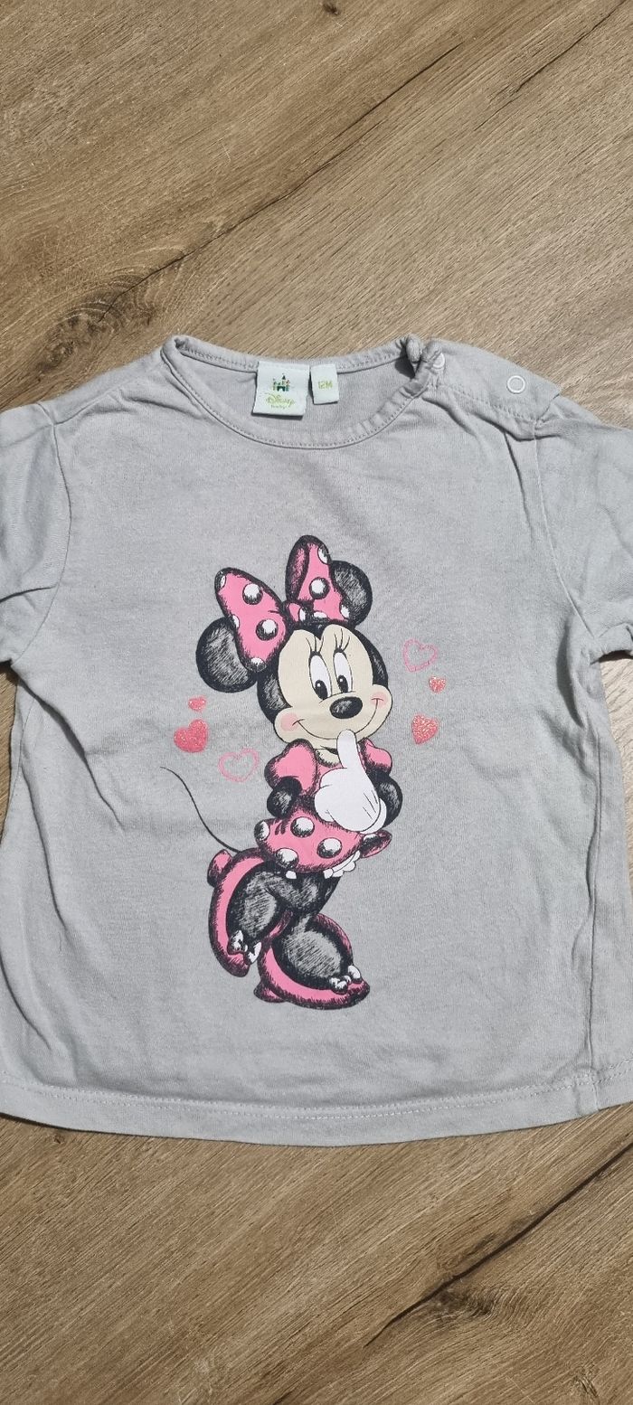 T-shirt à manches longues Minnie avec cœurs pailletés Disney taille 12 mois Très bon état